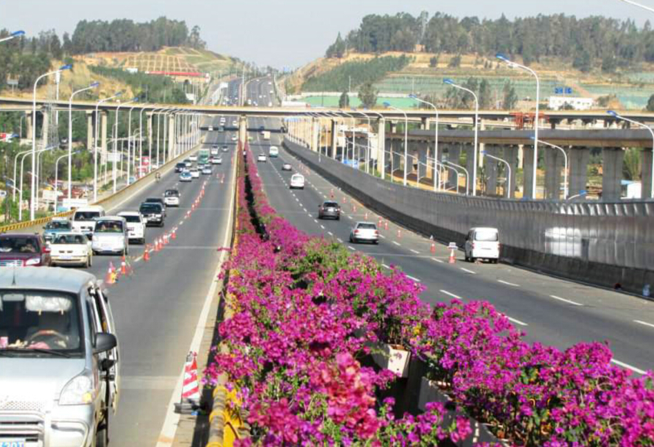 主要運(yùn)用于高架橋、人行天橋垂直綠化、建筑物墻面和陽臺(tái)垂直綠化、河道綠化等。高架橋垂直綠化采用輕質(zhì)蓄水循環(huán)一體 化系統(tǒng),該系統(tǒng)具有自動(dòng)灌溉、集中排水等功能。所用種植容器具有蓄水、保溫隔熱功能,采用新型材料,具有重量輕、耐老化、使用壽命長,環(huán)保、造型美觀等特點(diǎn)。懸掛系統(tǒng)結(jié)構(gòu)簡單、牢固、重量輕、耐銹蝕。采用隱藏式安裝,與橋梁結(jié)合緊密、達(dá)到整體景觀效果。
